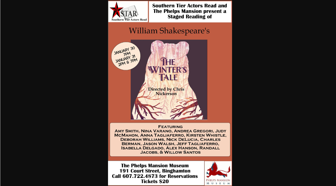 🎭Fri. 1/30 - Sun. 2/1 Southern Tier Actors Read: Shakespeare's The Winter's Tale