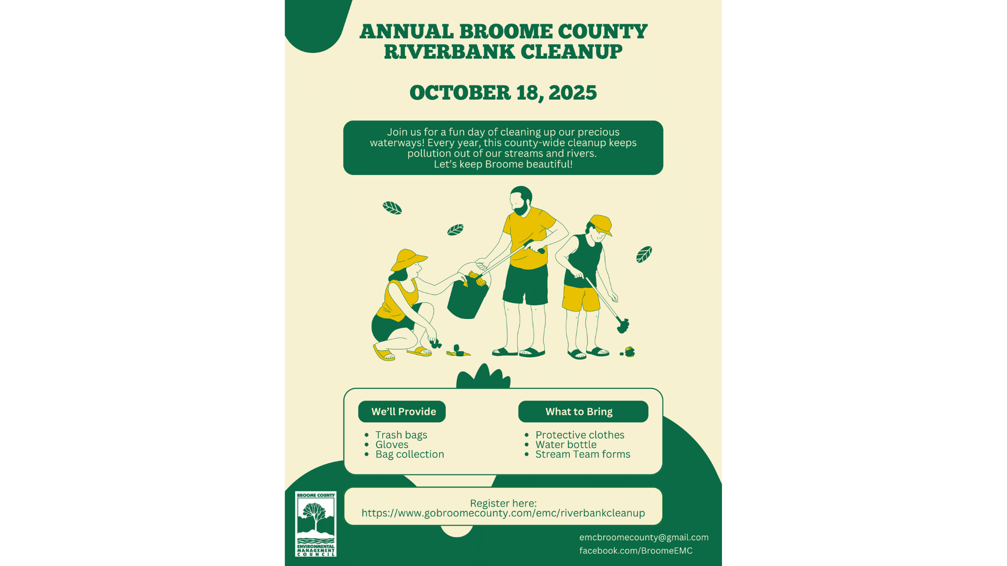 🏞️Sat. 10/18 Annual Broome County Riverbank Cleanup