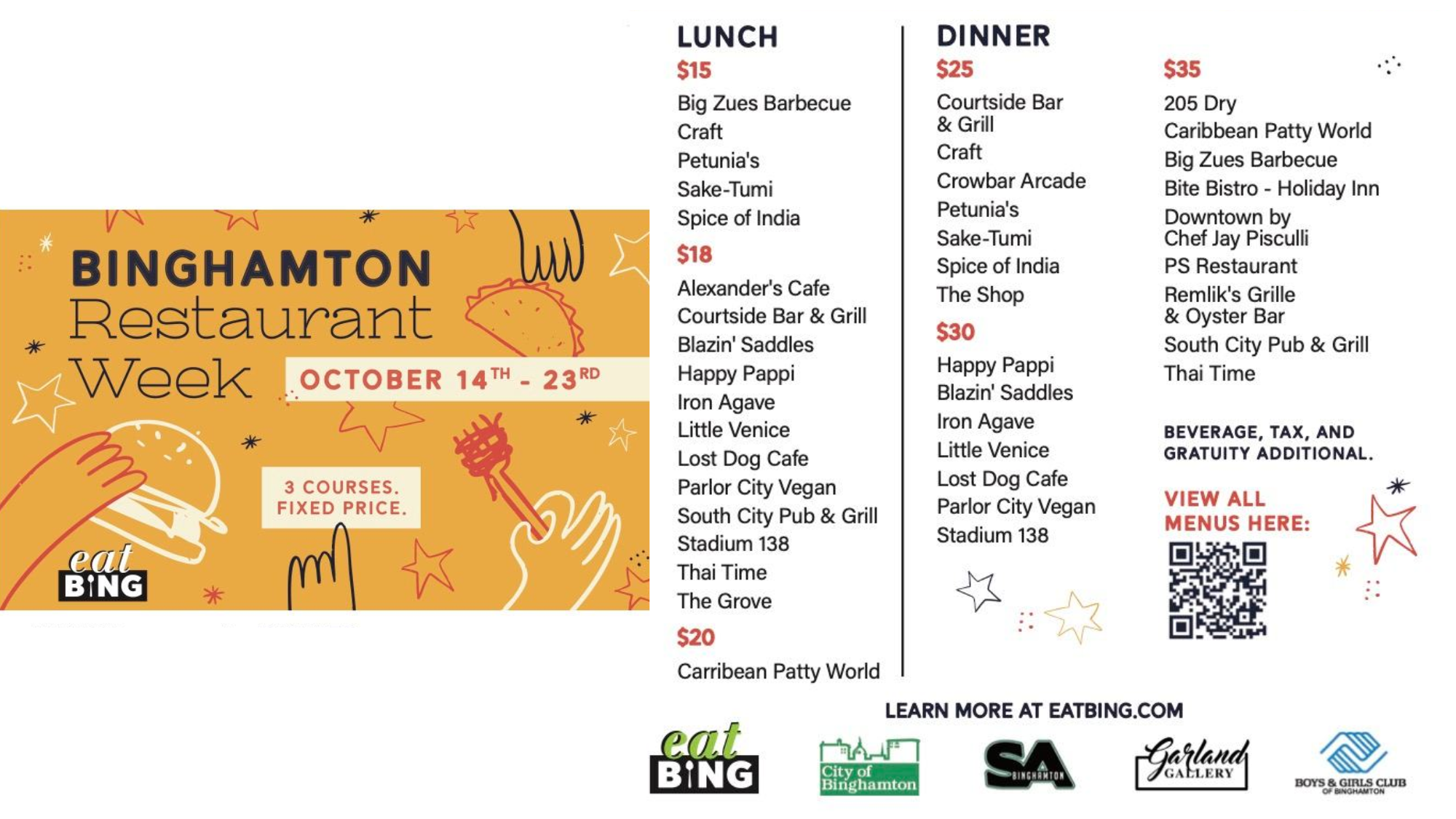 🍝Tues. 10/14 - Thurs. 10/23 Binghamton Restaurant Week 2025