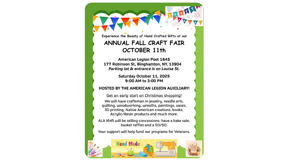 🧵Sat. 10/11 American Legion Post 1645 Annual Fall Craft Fair