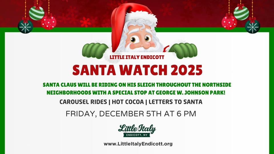 🍕🎅Fri. 12/5 Little Italy Endicott Santa Watch 2025