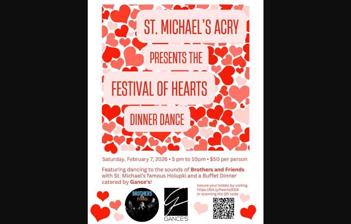 ❤️Sat. 2/7 St. Michael's Acry Festival of Hearts Dinner Dance w/ Brothers & Friends, Buffet Dinner