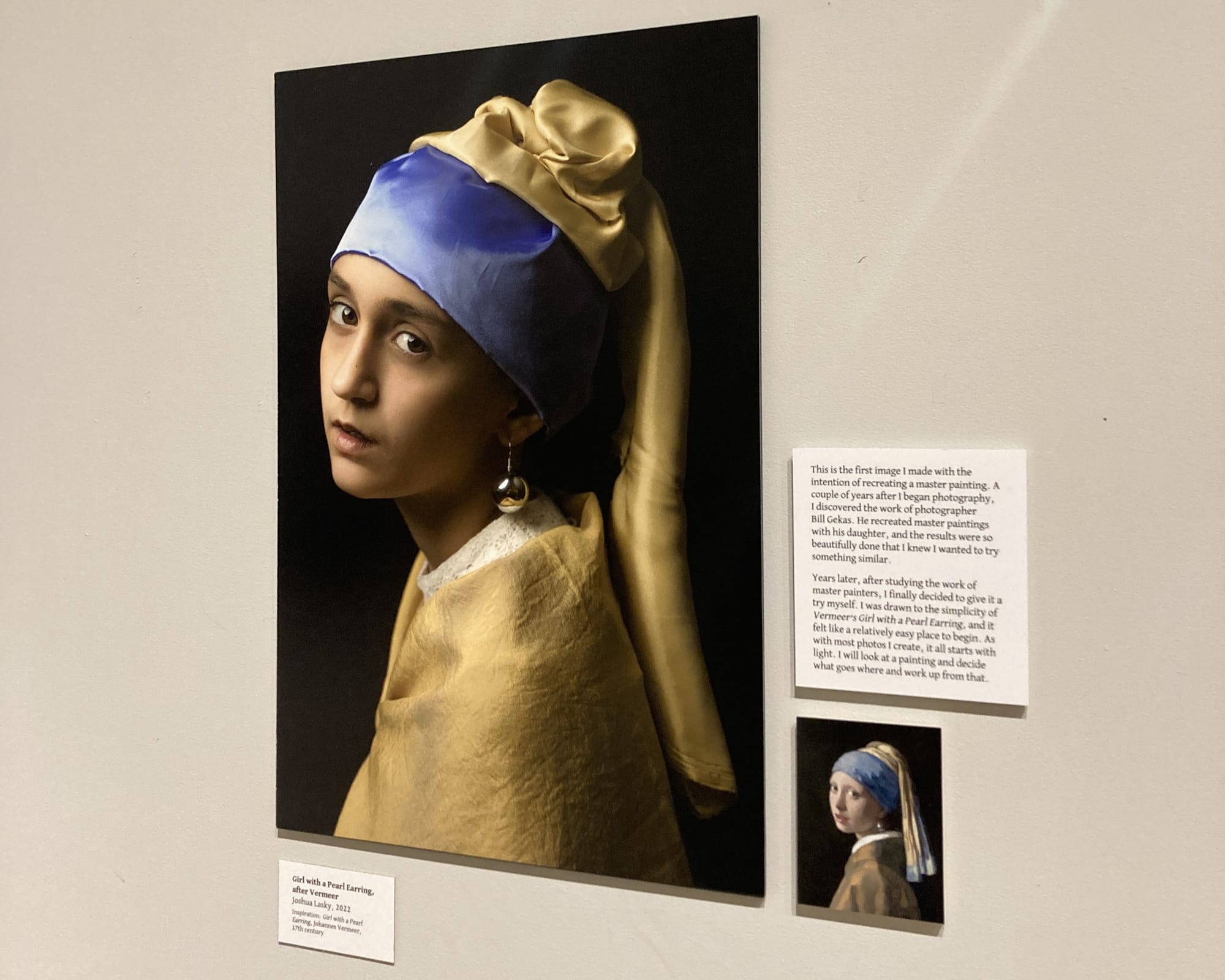 Lasky’s use of lighting and fabric in pieces like “Girl with a Pearl Earring, after Vermeer” (2022) could have made me believe it was painted.