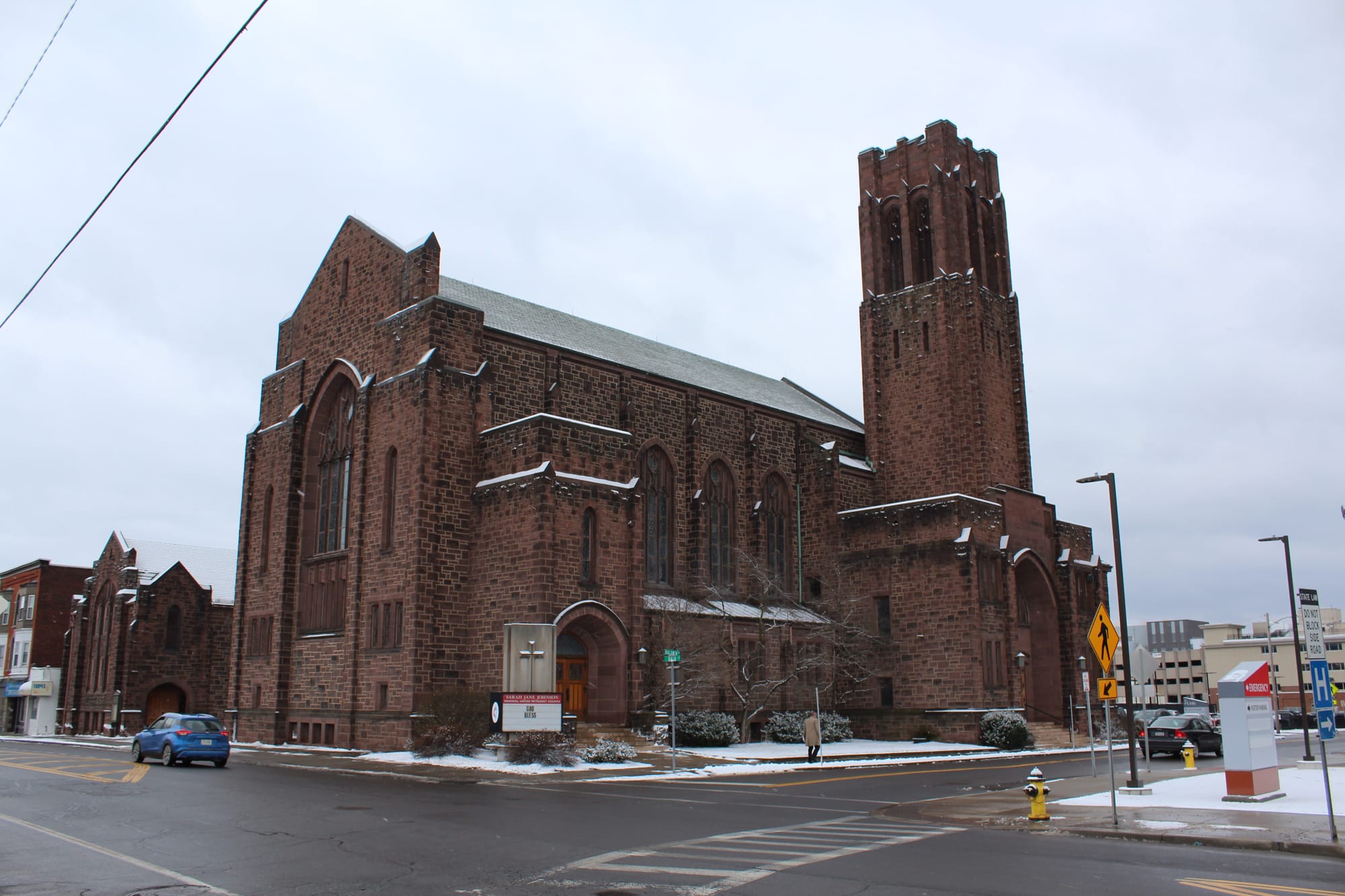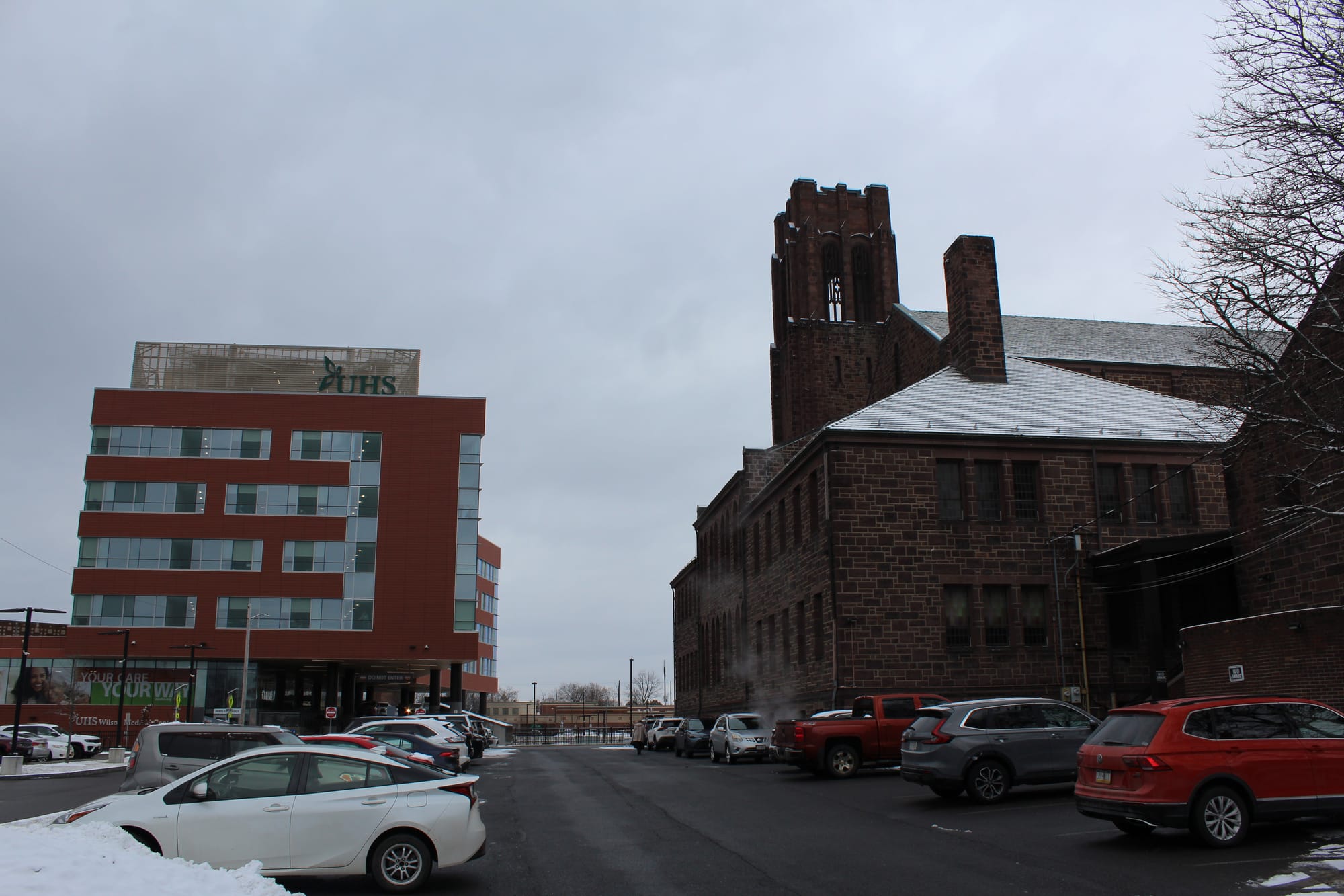 Right alongside Sarah Jayne Johnson Memorial United Methodist Church is the Wilson Medical Center, the flagship hospital of the UHS system. The campus completed a massive expansion in 2024 with the opening of its Wilton Tower, which sits directly across Baldwin Street from the Church.