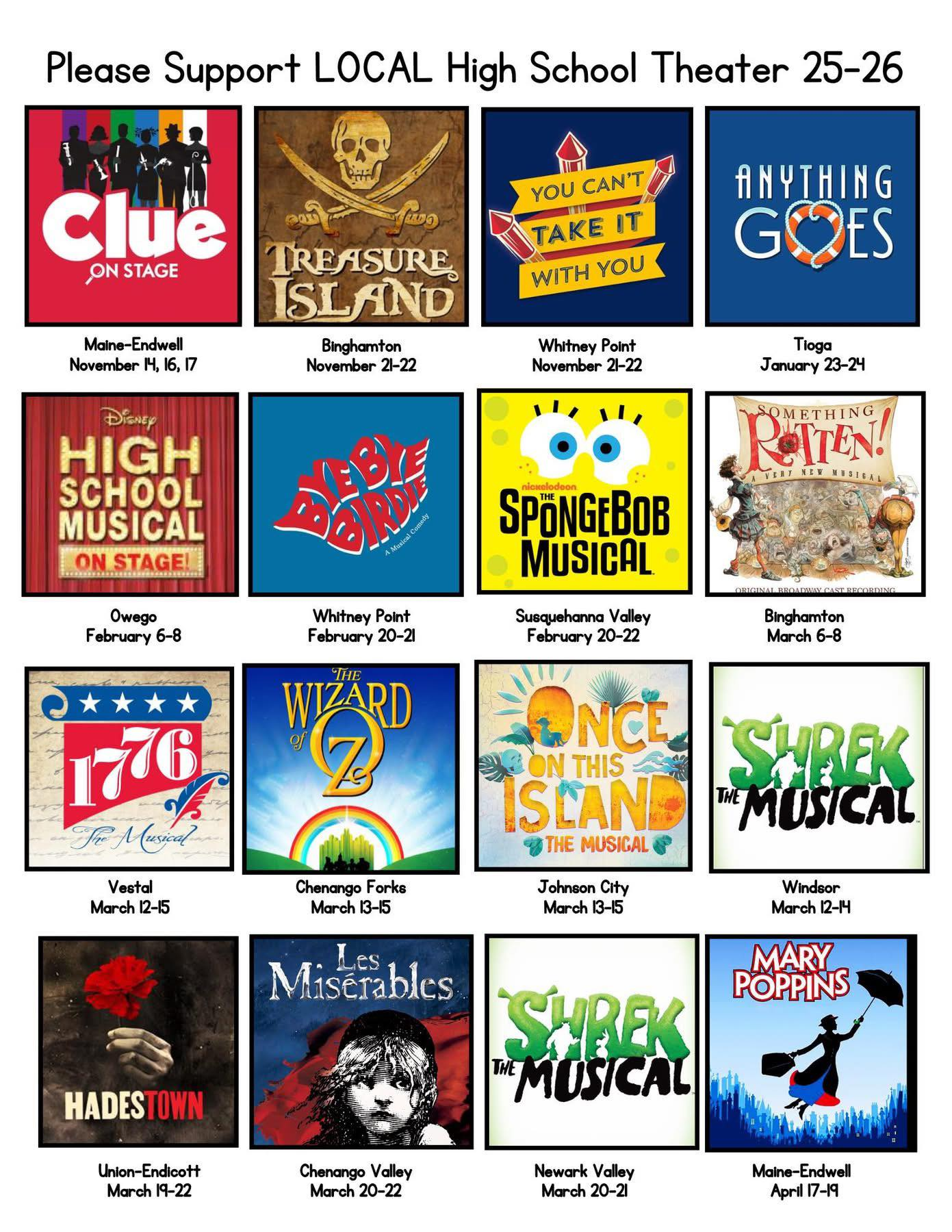 Tioga, Waverly and Owego-Apalachin already kicked off the season for Tioga County with Anything Goes, Matilda and High School Musical, respectively.